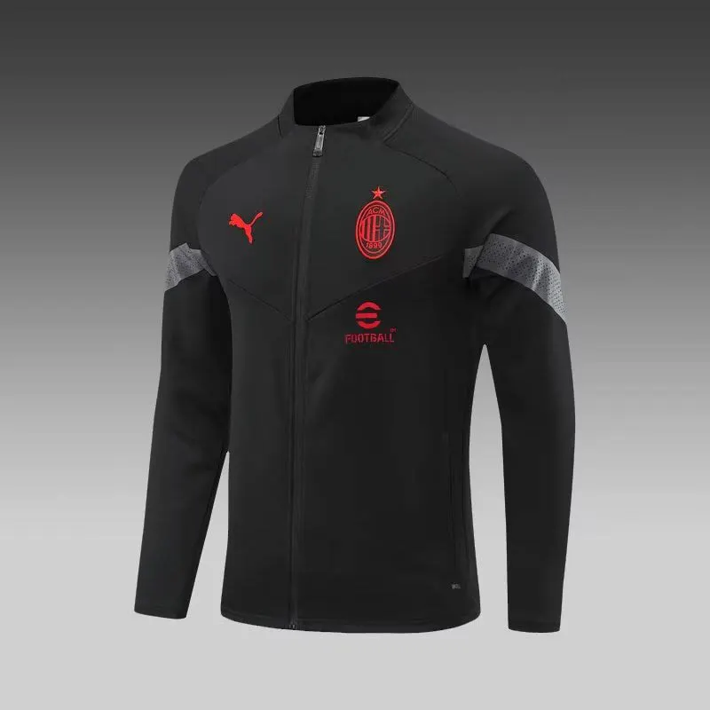 2022/2023 AC Milan Long Zipped Jacket Black Soccer Jersey 1:1 Thai Quality Set