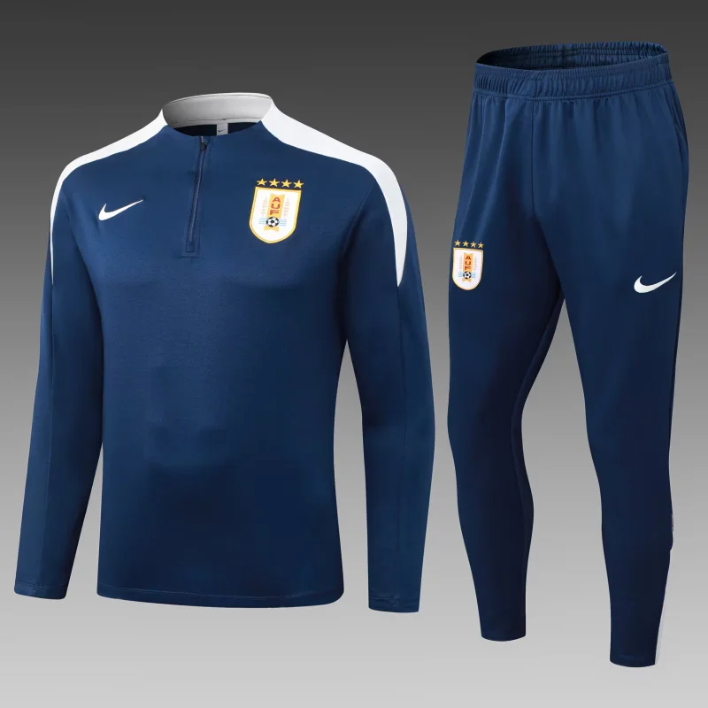 2025 Uruguay Half-Pull Training Suit Royal Blue Football Shirt 1:1 Thai Quality Set
